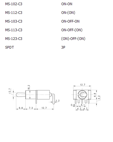 미니 토글스위치 MS-102-C4 3P 2단 (단위/1EA)