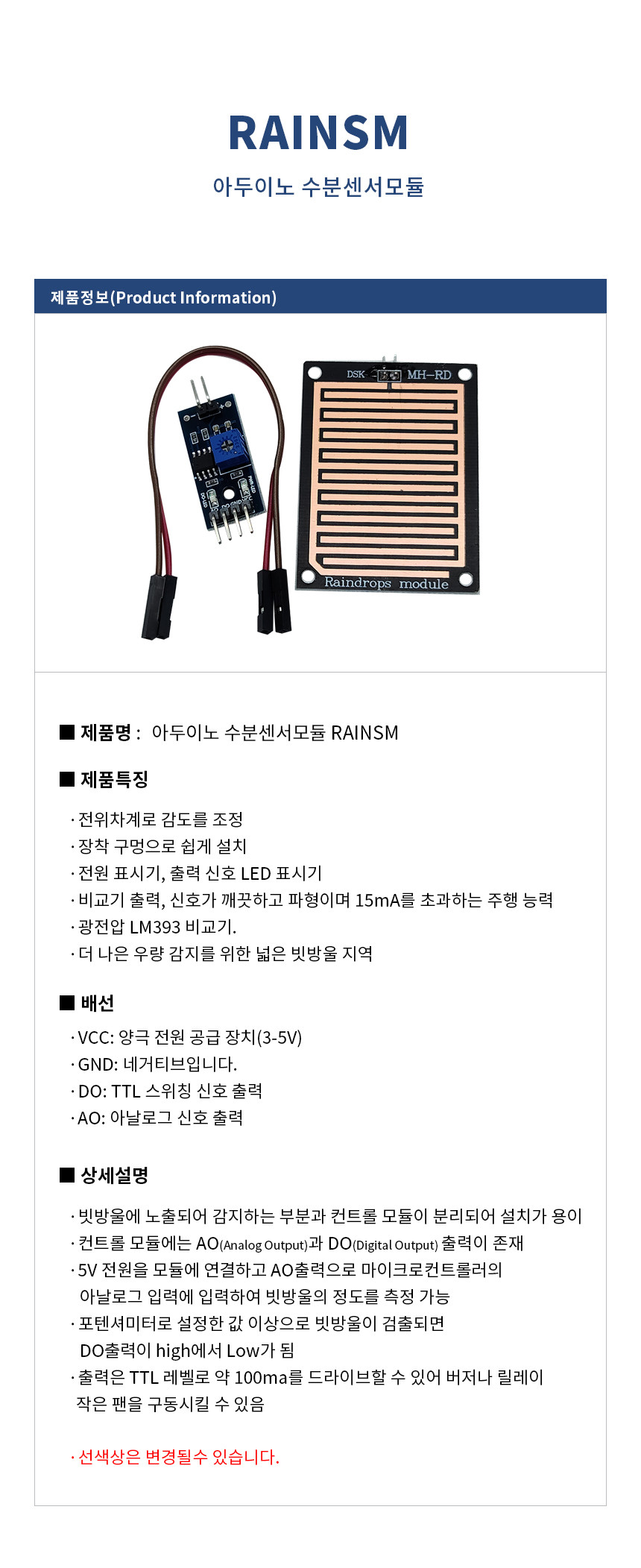 아두이노 빗물감지 빗방울감지 수분센서모듈 레인센서모듈 RAINSM
