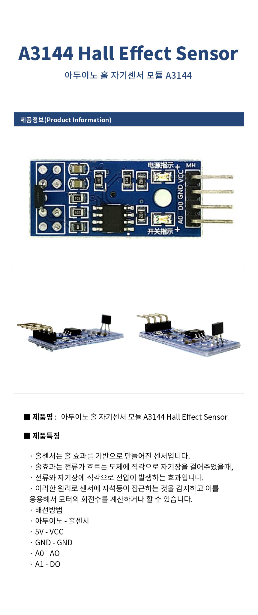 아두이노 홀 자기센서 모듈 A3144 Hall Effect Sensor 3144 HALL-SENSOR MODULE