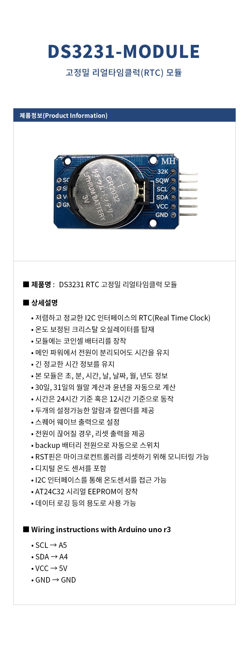 아두이노 DS3231 RTC 고정밀 리얼타임클럭 모듈