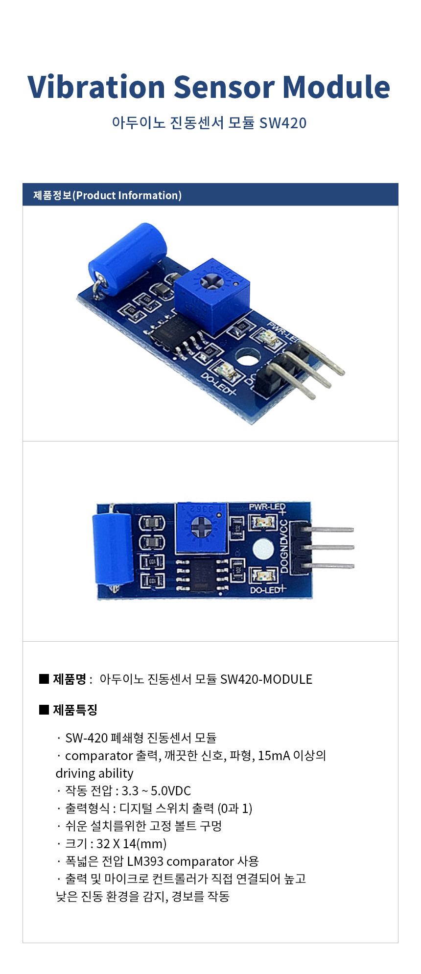 아두이노 진동센서 모듈 SW420 Vibration Sensor Module SW420-MODULE