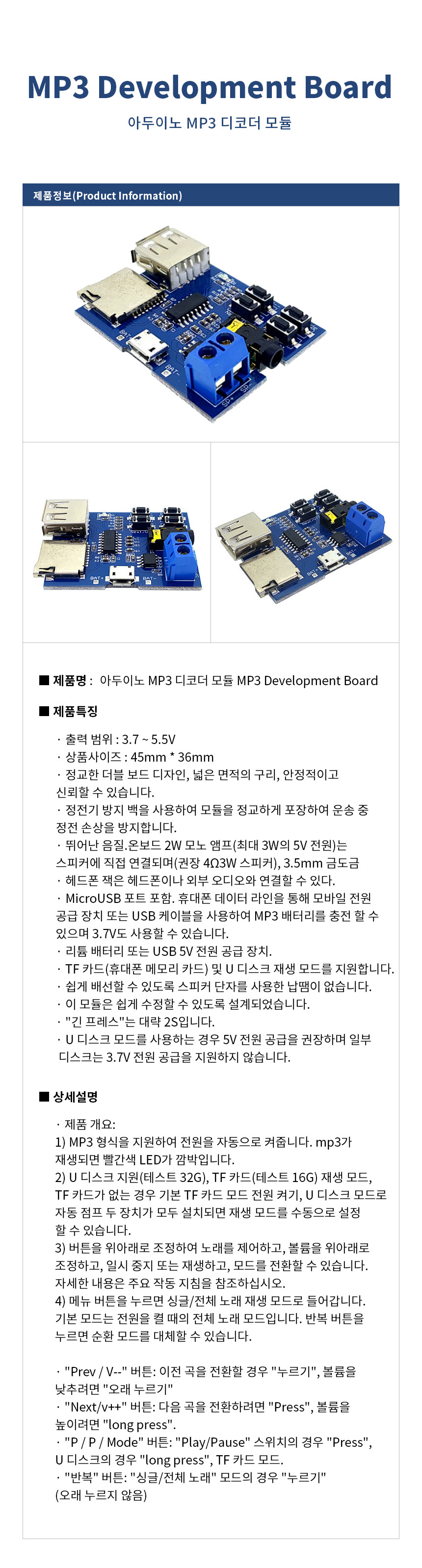 아두이노 MP3 디코더 모듈 MP3 Development Board
