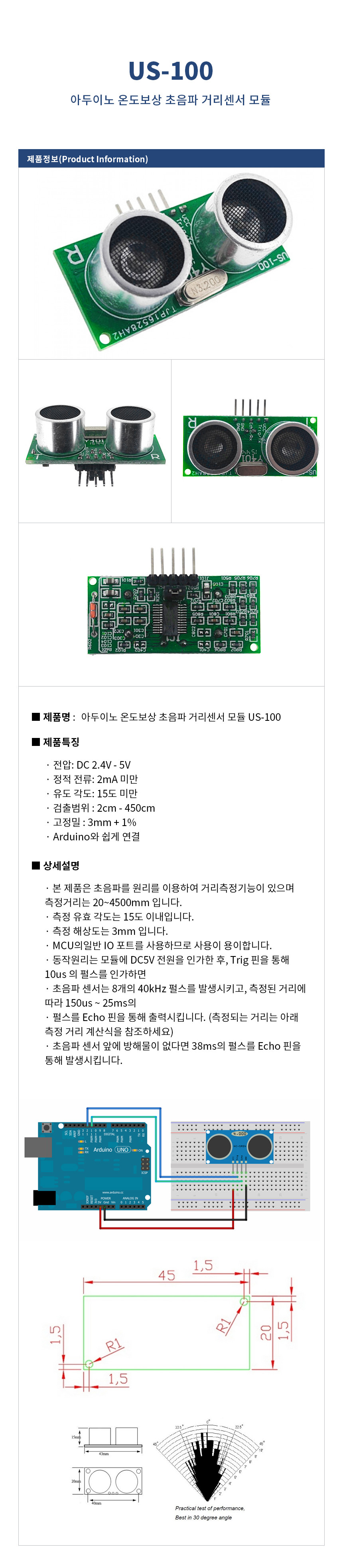 아두이노 온도보상 초음파 거리센서 모듈 US-100