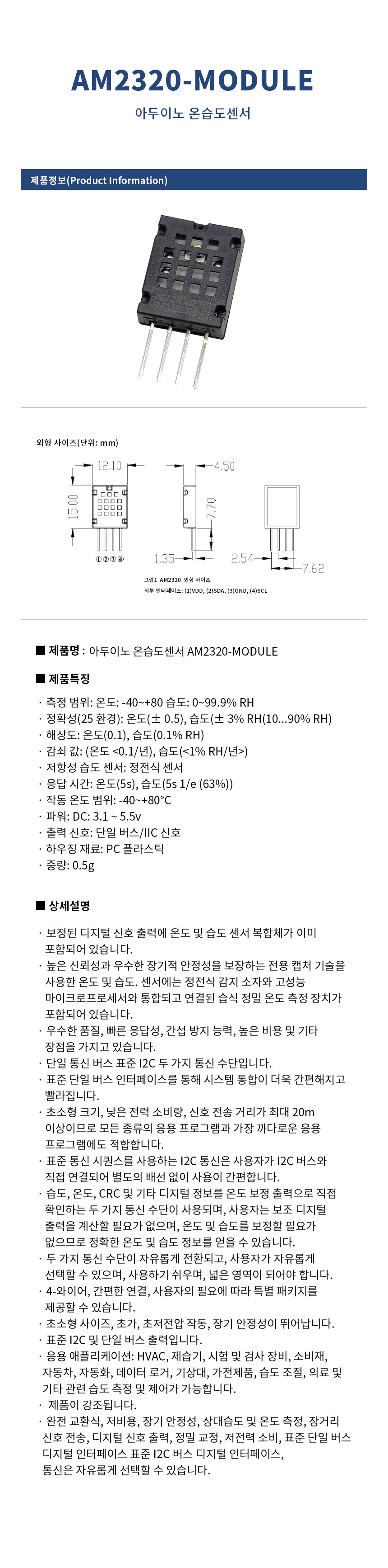 아두이노 온습도센서 AM2320-MODULE