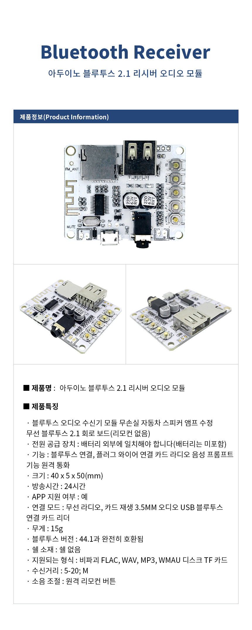 아두이노 블루투스 2.1 리시버 오디오 모듈 Bluetooth Receiver Module