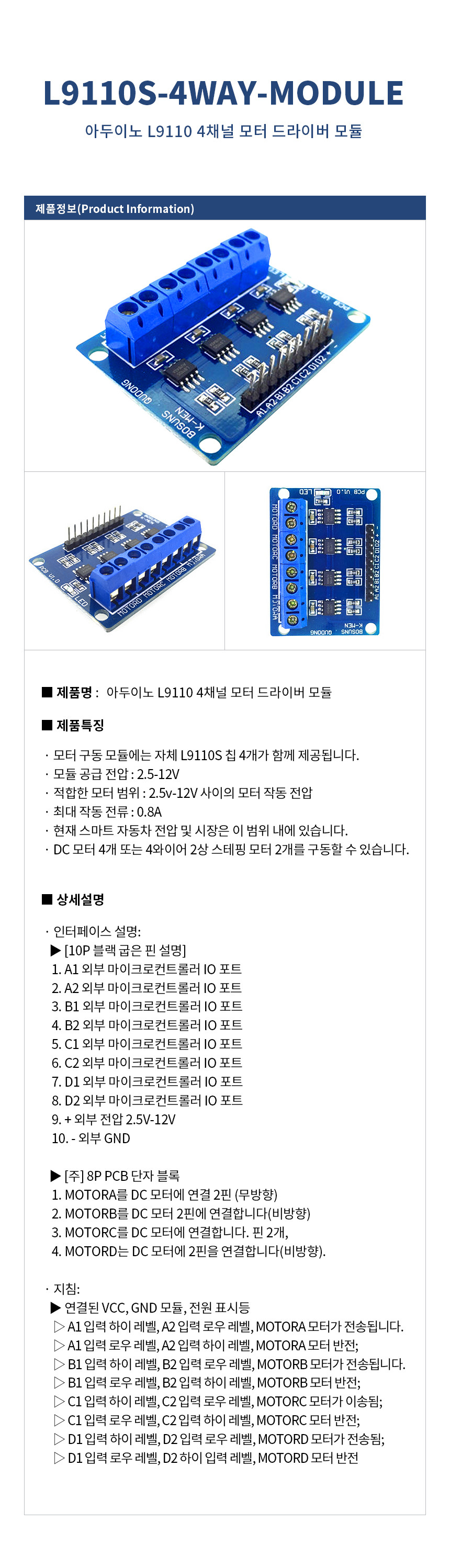 아두이노 L9110 4채널 모터 드라이버 모듈 L9110S-4WAY-MODULE