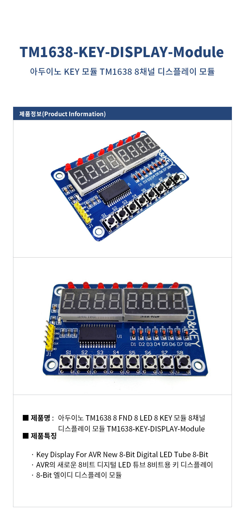 아두이노 TM1638 8 FND 8 LED 8 KEY 모듈 TM1638 8채널 디스플레이 모듈 TM1638-KEY-DISPLAY-Module
