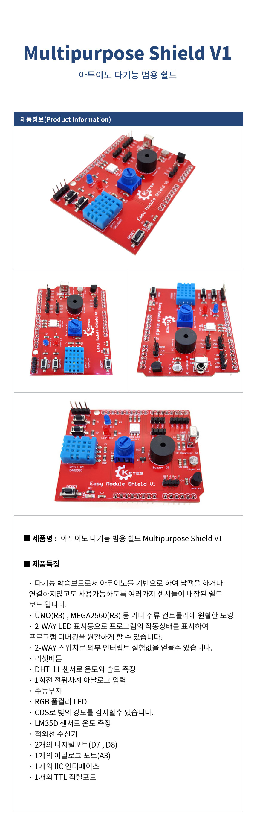 아두이노 다기능 범용 쉴드 Arduino Multipurpose ShieldV1