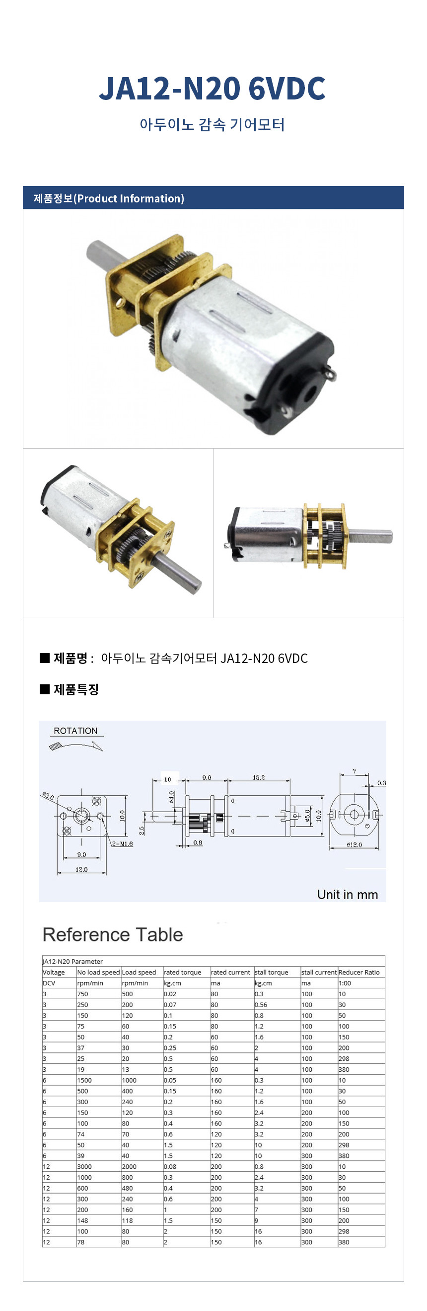 아두이노 감속기어모터 JA12-N20 6VDC