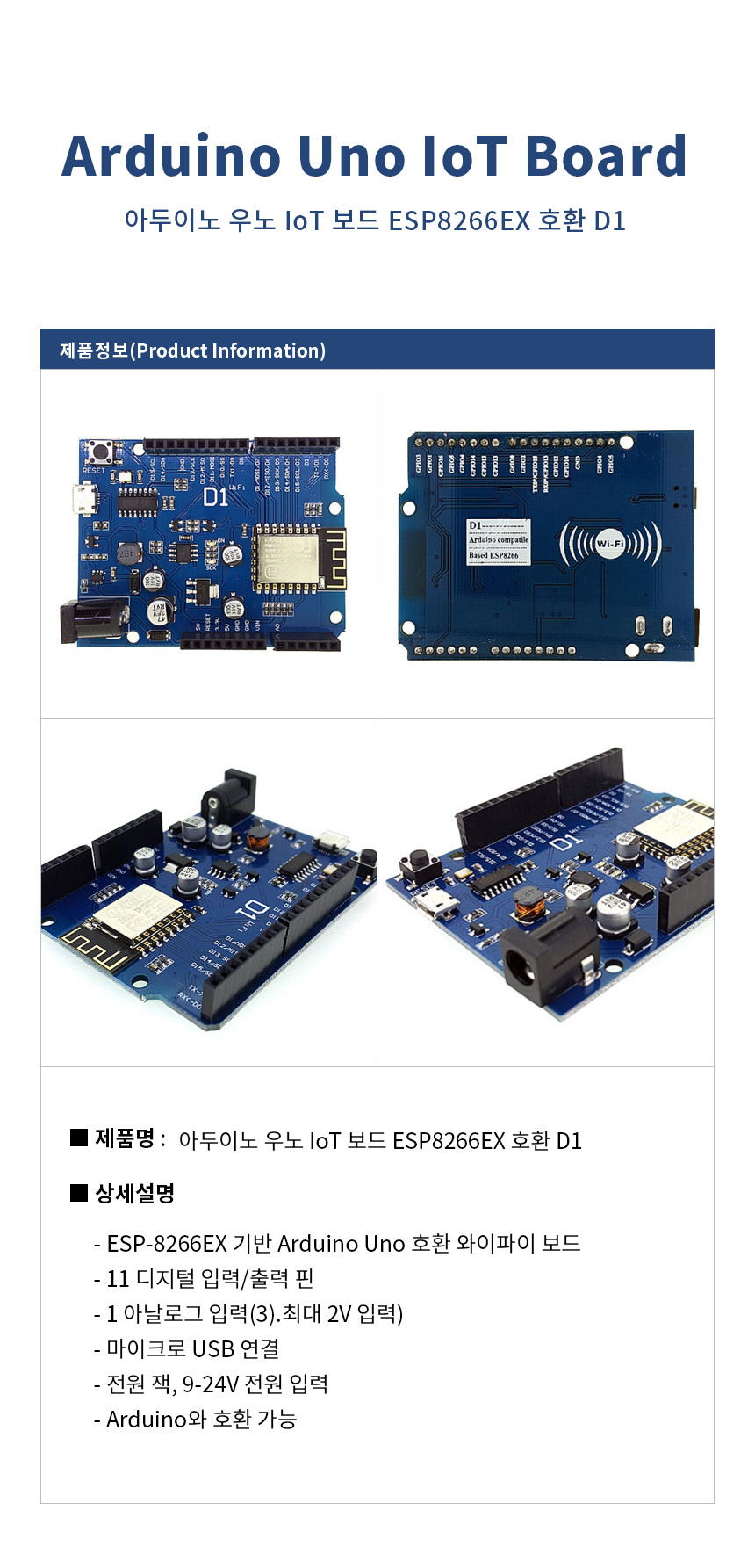 아두이노 우노 IoT 보드 ESP8266EX Arduino Uno 호환 D1 와이파이 보드 Arduino Uno IoT Board