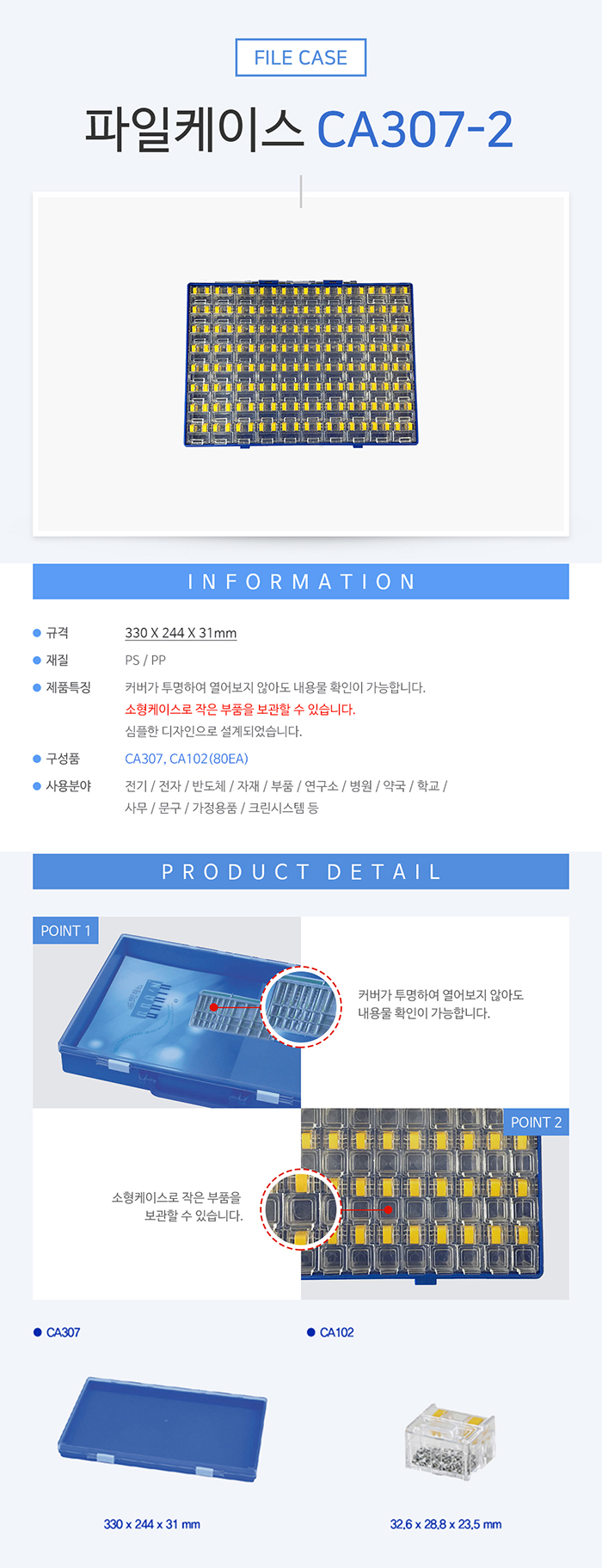 SMD칩박스 파일케이스 부품케이스 CA307-2
