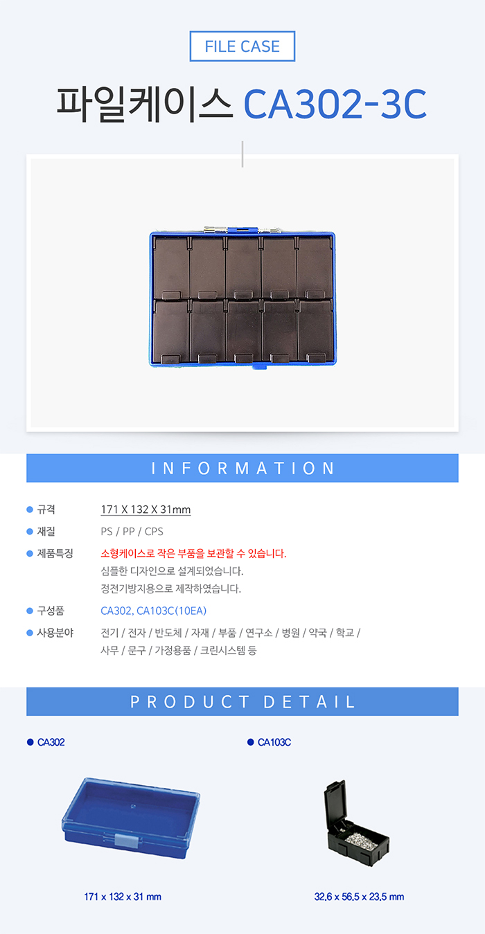 SMD칩박스 파일케이스 부품케이스 CA302-3C