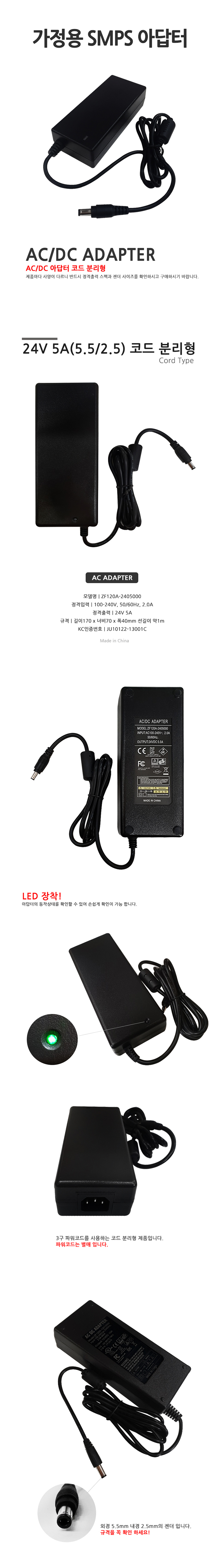 [전자식 아답터] ZF 24V 5A 코드분리형 (5.5/2.5)