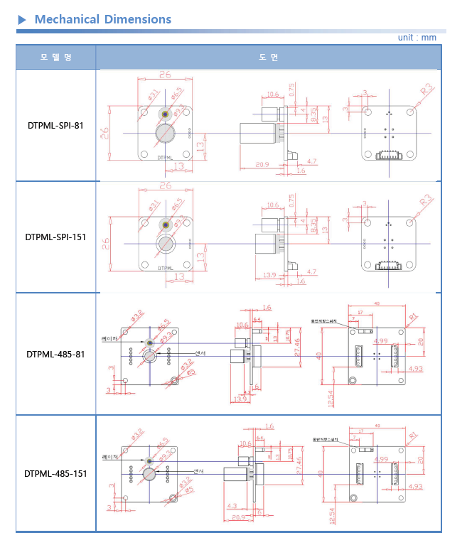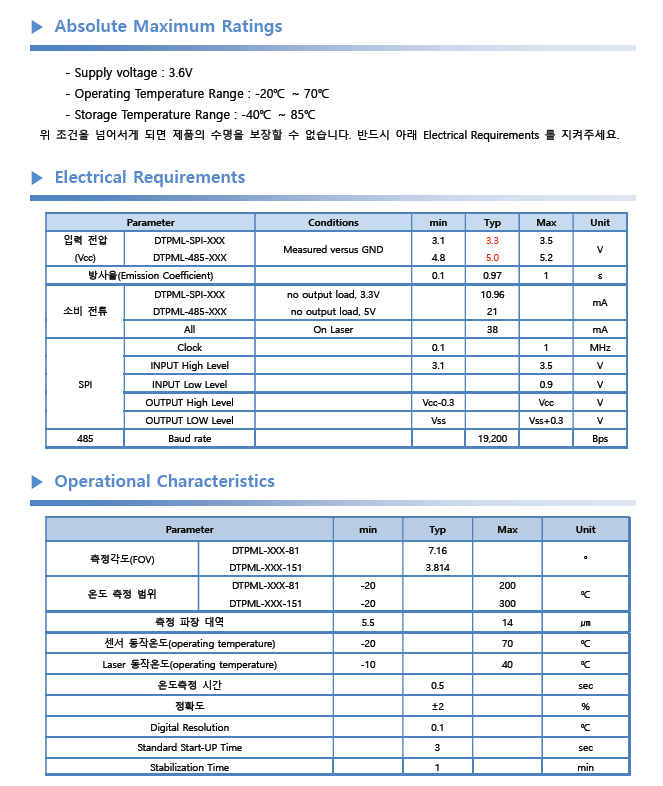 DTPML-485-81 비접촉 근거리 적외선 온도센서 모듈