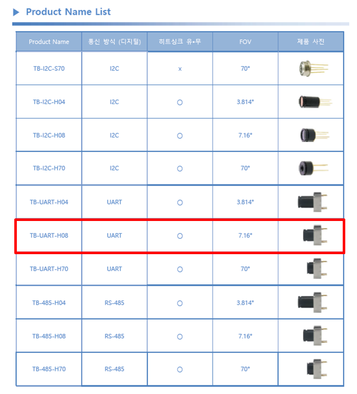 TB-UART-H08 비접촉 적외선 온도센서 모듈