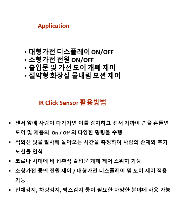 IR 방식 접근& Click 센서모듈 / DC 5V / 센싱 가능거리 (10~40cm)